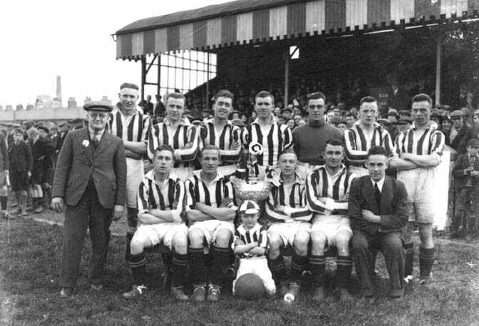 Clitheroe Football Club winning some competition of the time.At first I thought it was the Lancashire Combination Cup that they won in the 1934-35 season,but the other photographs of that team are totally different players.So when this was I do not know.