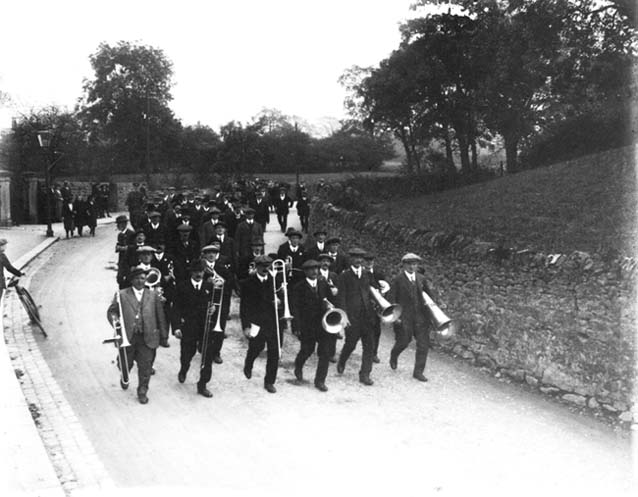 I found this along with the other old brungerley plates so I presume this band are off to the bottom of Brungerley Park or even by the River Ribble to play a song or two.In the back ground you can see just a field and trees where houses are now built.