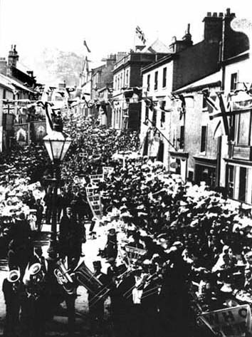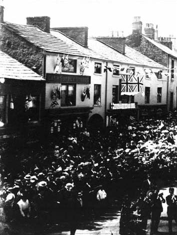 This Celebration in the town centre for the coronation of Edward VII in 1902.The plate for this photograph is the largest I have ever come across at 12" x 10",the standard being about 4" x 3 1/2".