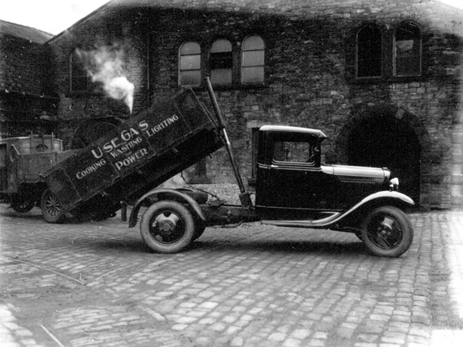 Clitheroe gas works back in the 1930's.Here is one of their waggons for an advertising photograph of the time.Clitheroe gas works use to be just behind the railway station.